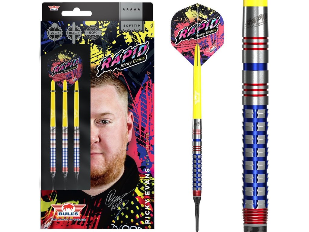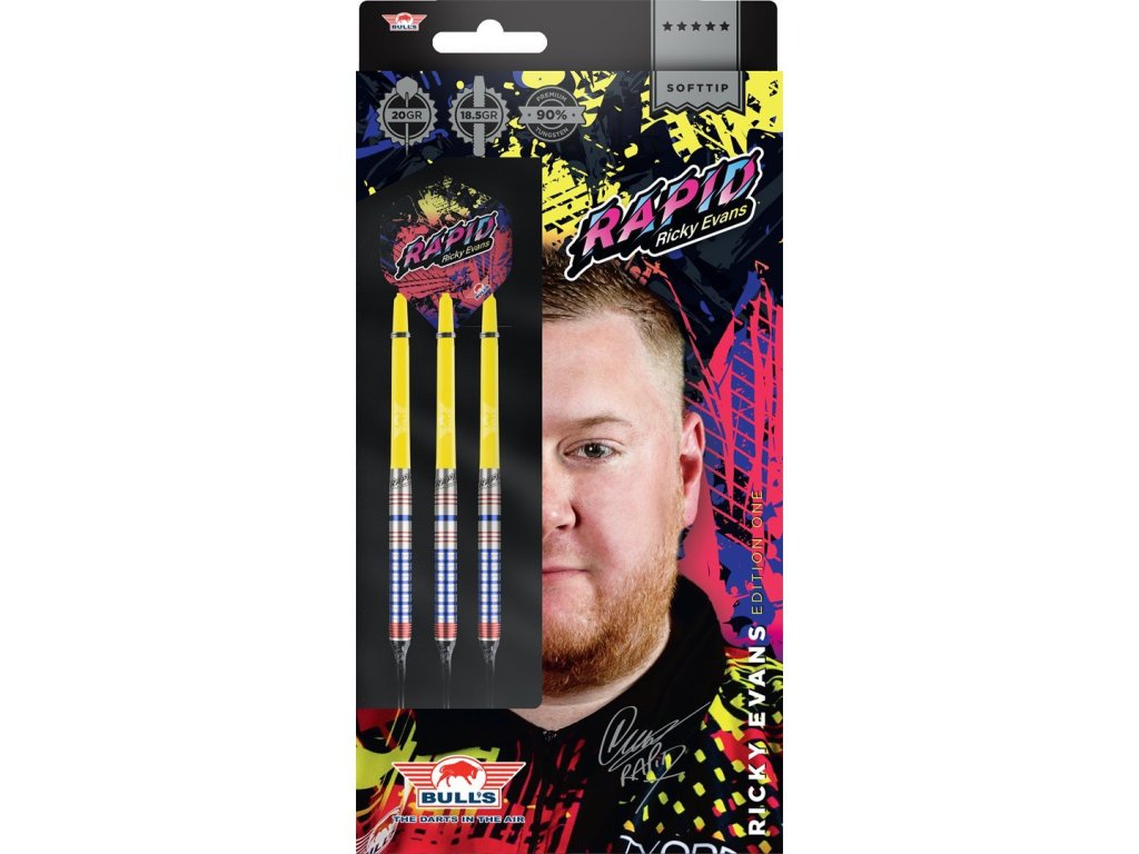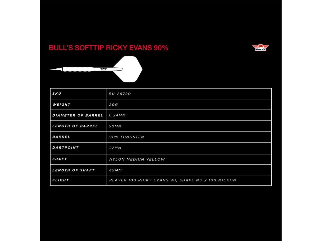 Softové šípky Bull's v spolupráci s Ricky Evans sú vyrábané vo variante 20 g hmotnosti. Materiál telíčka obsahuje 90 % volfrámu. Sada 3 šípok má kvalitné opracovanie a elegantný dizajn: